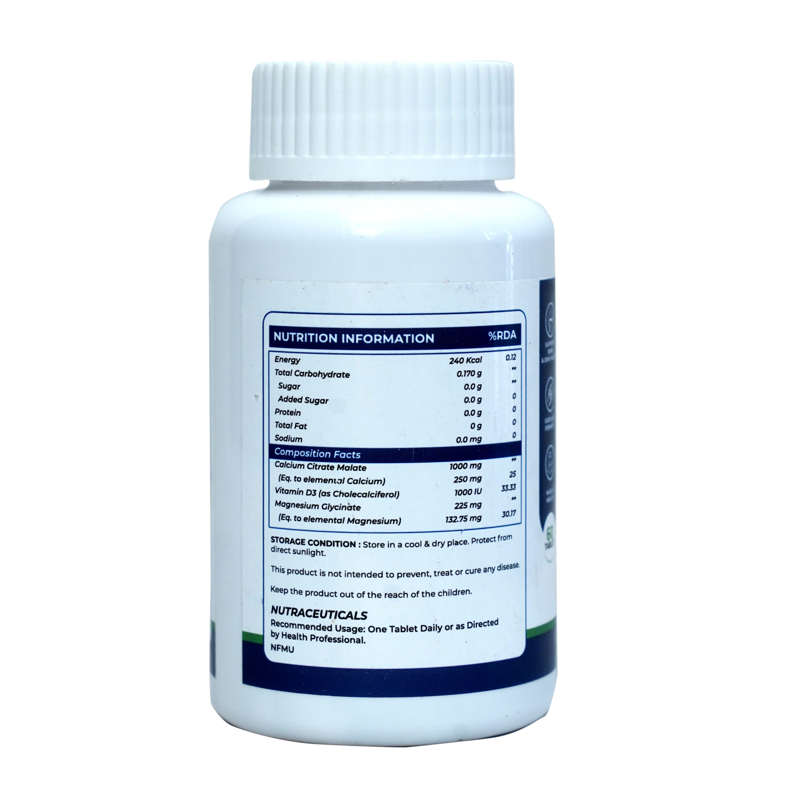 Each tablet delivers 1000 mg of Calcium Citrate, Vitamin D3(1000MG), and Magnesium Glycinate(225MG), forming a synergistic trio that enhances bone density, joint flexibility, and muscle recovery.